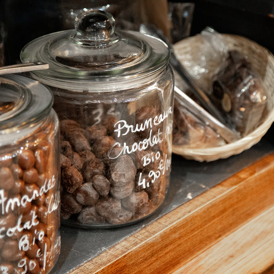 Amandes enrobées au chocolat noir